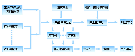 高爐生產(chǎn)具有周期性,每座高爐每天出鐵十幾次,污染煙塵集中在出鐵期間,對如何有效的降低除塵設(shè)施的運(yùn)行費(fèi)用造成一定難度.