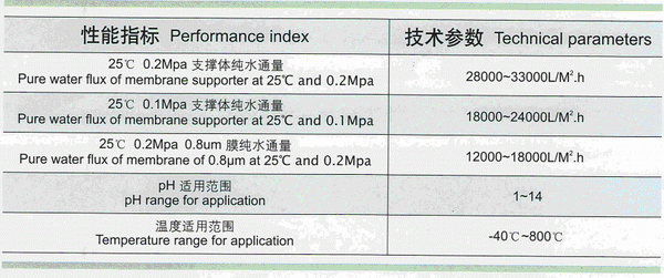 陶瓷膜產(chǎn)品各項性能參數(shù)均優(yōu)于國內(nèi)外同類產(chǎn)品。