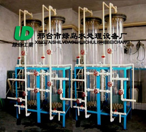 離子交換技術在水處理領域中有十分廣泛的應用。做為水質軟化的鈉離子交換器,主要用于中、低壓鍋爐水處理。離子交換脫鹽設備,主要用于純水和高純水的制備。離子交換設備適用于醫(yī)藥、化工、電子、涂裝、飲料及高壓鍋爐給水等諸多工業(yè)部門。它與近年引進的反滲透裝置相比較,具有去除離子性雜質徹底;對水的預處理要求低;設備造價便宜等優(yōu)點。在制備高純水方面,離子交換技術在當前還沒有替代設備。進水總含鹽量在400mg/l以下時,根據(jù)用戶不同要求,出水水質在1.0-0.2μs/cm之間。如果進水總含鹽量500mg/l以上時,可與電滲析器反滲透聯(lián)合脫鹽,出水水質還可提高。我廠生產大、中、小型離子交換設備。根據(jù)進水水質和對出水要求,可為用戶進行單獨工程設計、輔機配套、安裝調試、制訂操作規(guī)程、培訓操作人員。投產后隨時維修服務,對產品實行終身技術保障。