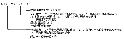 3)控制柜:為SPG產(chǎn)品配套的電氣控制柜(箱)分為普通繼電控制柜(P型)和變頻調(diào)速控制柜(B型),型號含義如下: