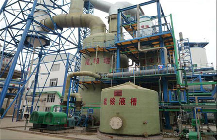 該項(xiàng)目采用我公司具有自主知識(shí)產(chǎn)權(quán)的新型氨法脫硫技術(shù),吸收塔為“湍流逆噴旋液塔”,系統(tǒng)處理煙氣量180000Nm³/h,脫硫效率≧95%,氧化率≧99.95%,尾氣排放溫度<60℃,尾氣SO2平均排放濃度≤50mg/Nm3,尾氣逸氨量遠(yuǎn)低于國(guó)家標(biāo)準(zhǔn)限值,每年消減SO21060噸,年產(chǎn)硫銨2400t。本工程于2008年12月開工建設(shè),于2009年9月投入運(yùn)行。