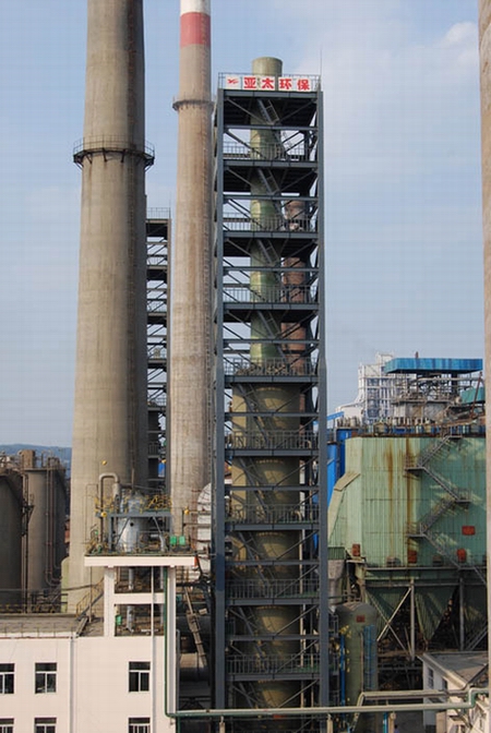 該項(xiàng)目處理煙氣量24萬(wàn)Nm3/h,運(yùn)用亞太環(huán)保具有自主知識(shí)產(chǎn)權(quán)的新型氨肥法脫硫技術(shù)(國(guó)家創(chuàng)新基金項(xiàng)目“SO2吸收及亞鹽催化氧化一體化工藝”)治理鍋爐SO2煙氣,直接利用煉焦廢氨水作為吸收劑吸收SO2,以廢治廢,取得了污染治理和資源回收利用的雙重效果,同時(shí)給企業(yè)帶來了良好的經(jīng)濟(jì)效益,得到了業(yè)主方的高度贊同。