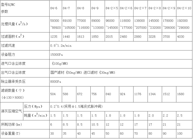 除塵器的主要技術(shù)參數(shù)為風量、氣體溫度、含塵濃度與濕度。根據(jù)工藝設(shè)計的風量、氣體溫度、含塵濃度的最高數(shù)值,按略小于技術(shù)性能表中的數(shù)值為原則,其相對的除塵器型號,即為所需要的除塵器型號,采用的濾料則根據(jù)入口濃度、氣體溫度、濕含量確定。