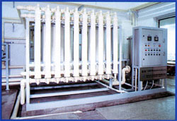 本公司所用為中空纖維超濾膜,采用先進(jìn)的內(nèi)壓式膜分離技術(shù),在常溫和低壓下進(jìn)行分離,因而能耗低。超濾膜微孔一般在0.01微米(十萬分之一毫米)以下,過濾精度較高。