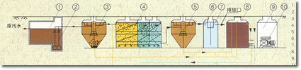 二沉池:WSZ-AO系列二沉池為旋流式沉淀池,表面負(fù)荷為1.0 m3/m2·hr沉淀時間為2小時。