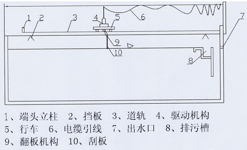XGZ系列行車式刮渣機(jī)是污水處理設(shè)施的配套設(shè)備,它適用去除浮在水面的各種雜質(zhì)。該系列刮渣機(jī)往返運(yùn)行在長(zhǎng)方形水池的予埋道軌上面,前進(jìn)時(shí)依靠刮板將浮在水面的雜質(zhì)刮到排污槽內(nèi),后退時(shí)將刮板提起,循環(huán)工作而達(dá)到除渣的目的。