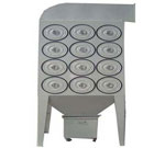 含塵氣流由側(cè)進口或頂進口進入除塵器內(nèi),粉塵被濾筒外表“截流”并聚集起來,凈化后的氣流由濾筒中心部流出排放,達(dá)到凈化目的。為清潔濾筒,利用壓縮空氣(0.6-0.7Mpa)產(chǎn)生強烈的氣流通過電磁閥門釋放出來至濾筒中心部,如同振動波一樣將濾筒外表面聚集的粉塵振蕩及噴吹下來并落到下面的灰斗內(nèi)。為確保濾筒除塵正常連續(xù)動轉(zhuǎn),由PLC控制系統(tǒng)按設(shè)定程序進行反吹。