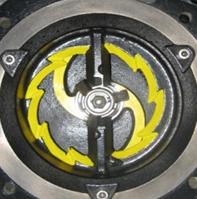 切割系統(tǒng)中三角切割刀和葉輪同步旋轉(zhuǎn),切割刀盤固定在吸入前蓋上。可通過刀盤上的調(diào)整裝置或切割刀頭上的調(diào)整墊片調(diào)整刀頭和刀盤之間的間隙,保證最佳的切割效果。圖1.切割系統(tǒng)