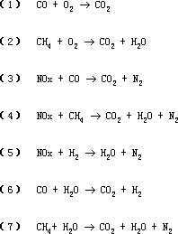 由于CH4屬于最為穩(wěn)定的HC化合物,其活化和轉(zhuǎn)化困難。表現(xiàn)在CH4的自身氧化反應(yīng)即反應(yīng)(2)比一般HC化合物的氧化反應(yīng)難度大;同時(shí)CH4和NOx的偶聯(lián)反應(yīng)即反應(yīng)(3)比HC和NOx的偶聯(lián)反應(yīng)同樣困難得多,導(dǎo)致NOx的轉(zhuǎn)化難度大。所以,壓縮天然氣汽車尾氣凈化比汽油車尾氣凈化困難得多。凈化汽油車尾氣的三效催化劑用于壓縮天然氣汽車尾氣是達(dá)不到凈化要求的。
