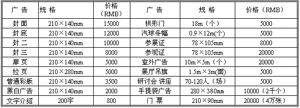 ☆ 合資企業(yè):標(biāo)準(zhǔn)展位(9㎡):RMB 7800元 室內(nèi)空地(36㎡起):RMB 800元/㎡