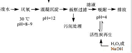 (2)活性炭具有良好的吸附性能,本工藝的最佳吸附條件:pH=4,粉末活性炭用量為20g/L,吸附過程中需要攪拌,吸附時間為40min,吸附后出水的CODCr為150mg/L以下,達到了國家排放標準。