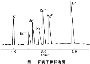 在上述條件下測得的陽離子標樣譜圖如圖1所示。