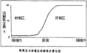 OCO工藝的一個主要特點是:好氧區(qū)與缺氧區(qū)之間的污水交換,即內(nèi)回流不需泵送,以上兩個區(qū)域之間有一段是相通的。兩者之間的交換形式及量的大小是依靠攪拌器的控制來實施,因此節(jié)省能耗。當(dāng)攪拌器運轉(zhuǎn)時,湍流增強,好氧區(qū)與缺氧區(qū)混合程度增強,當(dāng)攪拌器停止運轉(zhuǎn)時,兩區(qū)之間的混合程度較低。此時測得的溶氧狀況如圖2所示,好氧區(qū)與缺氧區(qū)的區(qū)分很明顯。OCO反應(yīng)池的構(gòu)造和攪拌器的循環(huán)工作可保證好氧區(qū)和缺氧區(qū)之間很高的回流比,這種頻繁的變化是該工藝有效脫氮的關(guān)鍵之一。