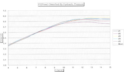圖一是動(dòng)態(tài)運(yùn)行時(shí),上水壓力自4-15公斤,出水壓力變化曲線