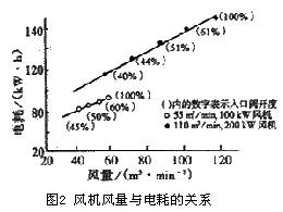 可見,電耗隨風(fēng)量變化很大,因此進(jìn)行風(fēng)量控制節(jié)能效果顯著,而且功率越大效果越明顯,當(dāng)然風(fēng)量并不是可以任意減小,它將受到許多因素的影響。