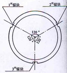 由于彎道摩阻力的作用,鋼絞線束中的預應力值隨距張拉端的距離增大而減少,為使在整個曲面上建立的預應力值大致均衡,故每圈預應力束,均在其下一圈的基礎之上按逆時針轉30°定位。