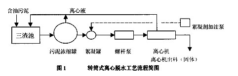 1999年,我廠購置了一臺LW400×1600-N2型轉筒式離心機對含油污泥進行濃縮處理,經(jīng)過幾年的摸索實踐,我們認為利用轉筒式離心機進行含油污泥的脫水處理是一種能耗少、效果顯著的方法。
