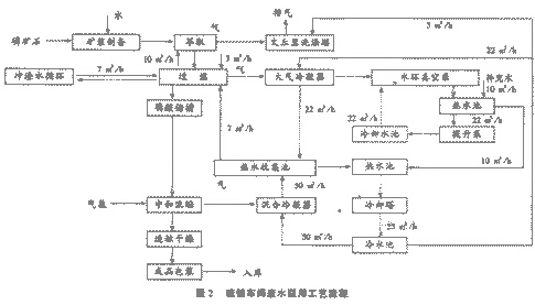 該車間廢水處理裝置在運行過程中,存在石灰用量偏高、化灰機及板框壓濾機處理能力偏小等問題。目前,將廢水與礦粉混合后直接回用于磨礦,經(jīng)過五個多月的運行,并未影響磨礦系統(tǒng)設(shè)備。這樣可降低運行費用,做到廢水封閉循環(huán)。