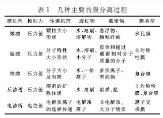 作為一種新型的分離技術(shù),膜分離技術(shù)既能對廢水進行有效的凈化,又能回收一些有用物質(zhì),同時具有節(jié)能、無相變、設(shè)備簡單、操作方便等特點, 因此在廢水處理中得到了廣泛的應(yīng)用并顯示了廣闊的發(fā)展前景。據(jù)估計,2000 年膜技術(shù)的世界市場規(guī)模已達近20 億美元的銷售額。在廢水處理中應(yīng)用的膜分離過程主要有微濾(MF) 、超濾(UF) 、納濾(NF) 、反滲透(RO) 和電滲析( ED),它們的分離過程及其傳質(zhì)機理見表1。
