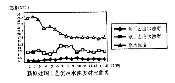 、坌鹿に嚨某恋沓爻鏊3NTU以內(nèi),原工藝沉淀池出水在5.7—11.3NTU,當原工藝與新工藝以相同的高負荷量運行時,原工藝與新工藝無可比性。