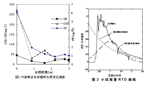 所謂人工復(fù)合生態(tài)床就是在人工濕地形式的基礎(chǔ)上,在其內(nèi)部填充多孔的、有較大比表面積的介質(zhì),以改善濕地的水力學(xué)性能,為微生物提供更大的附著面積,同時(shí)增強(qiáng)系統(tǒng)對(duì)污染物,尤其是氮、磷的去除能力。本研究利用實(shí)驗(yàn)室小試裝置對(duì)人工復(fù)合生態(tài)床處理生活污水的運(yùn)行性能,即氮、磷及COD去除性能進(jìn)行了研究,同時(shí)考察了床體內(nèi)部水的流動(dòng)特征。