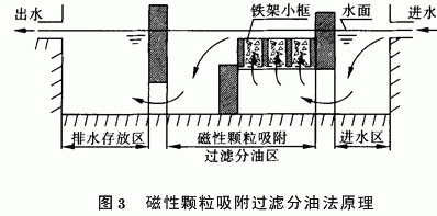該法利用磁性材料產(chǎn)生的磁力來吸附廢水中乳化態(tài)油和其他雜質,其原理見圖3。