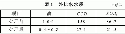 某鐵路機車修理廠在洗滌機車過程中產(chǎn)生廢水約100m 3h。對該廢水進行測試時發(fā)現(xiàn),在前10min內上浮效率上升較快,此后上浮效率上升緩慢?紤]該廢水含油量高達1200mg/L,故設計了綜合分油池:水力停留時間為0.2~1.0h,寬為2m,平均水深為1.5m,總池容為45m 3(沉淀隔油池的容積為15m 3)。廢水處理流程為:沉砂過濾槽及沉淀分油池→隔板分油池→蜂窩斜管分油池→磁性顆粒吸附過濾分油池→清水池。在分油池中設置了集油管,以便及時將浮于水面上的油層導入集油池。另外,還設置了水位高度自動調節(jié)板,采用全寬度排水(池內水面的高度變動很小),以保持水位線與集油管缺口間的高差始終在10~20mm范圍內。之所以將沉砂過濾槽設置在最前面,是由于廢水中含有污泥和有機雜質。采取這些綜合措施后,該廠外排水水質不達標問題得到了徹底根治。多年來該設施運行平穩(wěn),排水口水質清澈透明,含油量僅為0.4~0.8mg/L,達到了GB8978—1996的一級標準(見表1)。