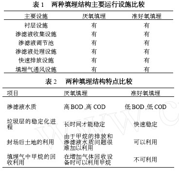3 兩種不同填埋結(jié)構(gòu)運(yùn)行參數(shù)特點(diǎn)比較