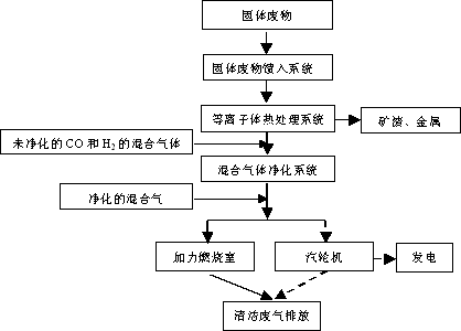通過(guò)第二氣化室處理后的混合氣體經(jīng)過(guò)凈化系統(tǒng)后,成為只含H2和CO的混合氣體,加力燃燒室在1000○C溫度環(huán)境下對(duì)H2和CO的混合氣體進(jìn)一步進(jìn)行處理,以確保無(wú)有害的混合物產(chǎn)生,比如二氧芑和呋喃等,最后排放到空氣中。當(dāng)然也可以取消加力燃燒室而利用這些混合氣體去驅(qū)動(dòng)汽輪機(jī)發(fā)電。