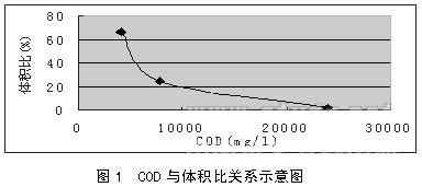由圖可見,滲瀝液濃度愈高,體積比應控制愈小,否則,將會使城市污水處理系統(tǒng)出現(xiàn)污泥膨脹等問題。