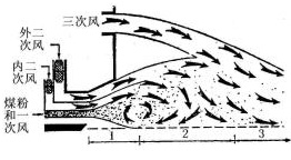 組織再燃燒,可以將整個燃燒室劃分為三個燃燒區(qū),也可使每個燃燒器分別形成各自的再燃燒區(qū)。二次燃料可以與一次燃料相同,如全部采用煤粉,也可以采用其他燃料,如油或氣體燃料。但要求二次燃料容易著火燃燒,因為燃燒區(qū)域分為三級,使得燃料和煙氣在再燃區(qū)內(nèi)的停留時間相對較短。因此最理想的二次燃料是天然氣,如選用煤粉,應(yīng)是揮發(fā)分高的煤種,而且粒度要細。