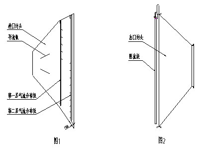 2、電除塵器進(jìn)口封頭內(nèi)設(shè)置兩層氣流分布多孔板。通過增加阻力,把分布板前面大規(guī)模的紊流分割開來,在分布板后面形成小規(guī)模紊流,而且在短距離內(nèi)使紊流的強(qiáng)度減弱。使原來方向不與氣流分布板垂直的氣流變?yōu)榕c板垂直。具體氣流分布板布置形式見圖1。