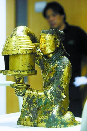 ![]() 1968年河北滿城陵山中山靖王劉勝之妻竇綰墓出土的長(zhǎng)信宮燈 |