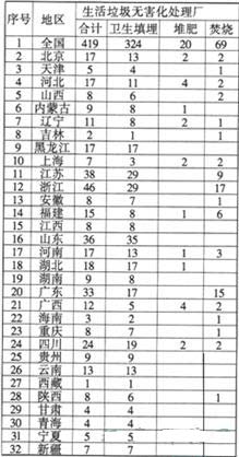 與2005年相比,2006年生活垃圾處理中焚燒處理增長顯著,而堆肥處理進(jìn)一步萎縮,填埋處理略有增長,根據(jù)統(tǒng)計(jì),現(xiàn)有的419座生活垃圾處理設(shè)施分布如下表1,其中比較突出的是,生活垃圾焚燒處理以浙江、廣東和江蘇發(fā)展較快,排在全國前列。