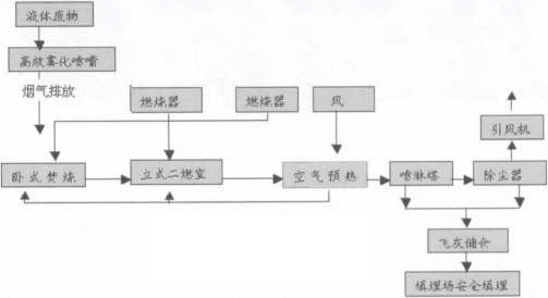 ![]() 圖5 臥式液體廢物焚燒爐工藝流程簡圖 |