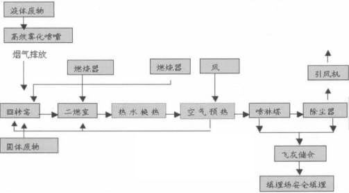 ![]() 圖3 回轉(zhuǎn)窯液體廢物焚燒工藝流程簡圖 |