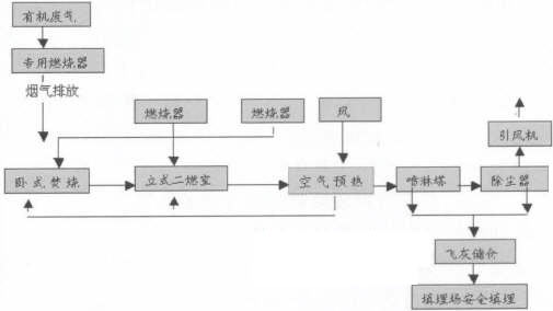 ![]() 圖2 控氣爐廢物焚燒工藝流程簡圖 |