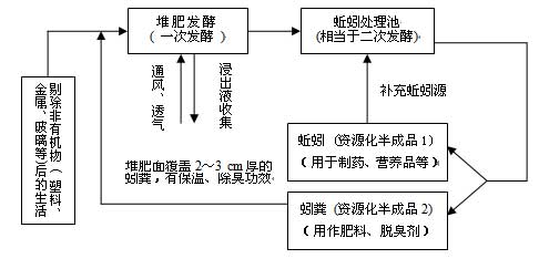 ![]() 圖1 生活垃圾資源化的蚯蚓生態(tài)處理流程示意圖 |