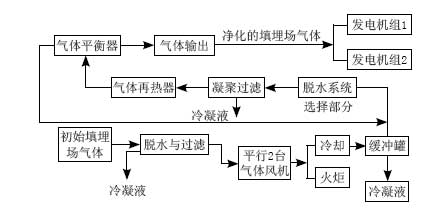 ![]() 圖1 天子嶺垃圾填埋場氣體處理系統(tǒng)流程 |