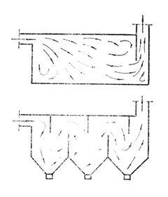 為了延長(zhǎng)含塵空氣在降塵室內(nèi)通行的過程,并使塵粒的動(dòng)能加快消耗,常在降塵室內(nèi)裝設(shè)許多隔板。這種設(shè)有隔板的降塵室,叫做迷宮式降塵室在迷宮式降塵室各個(gè)隔板間形成的空氣渦流,可以幫助塵粒在離心力作用下互相粘附而結(jié)成塵絮,這樣就可加快它的沉降,除塵效率也可以提高。當(dāng)然,這種除塵器對(duì)于空氣通過的阻力,顯然要比上述那種簡(jiǎn)單的降塵室大得多,一般為20~40毫米水柱。