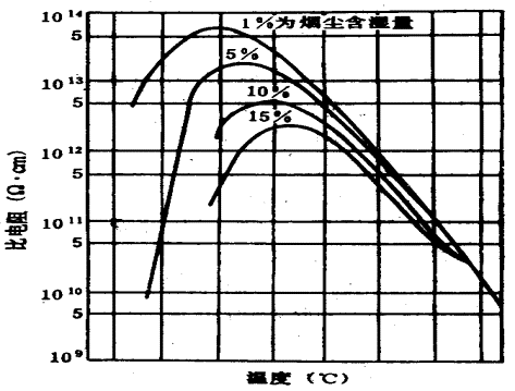 從圖5-7-14還可以看出,在低溫的范圍內(nèi),粉塵的比電阻是隨煙氣含濕量的增加而下降的,溫度較高時(shí),煙氣的含濕量對(duì)比電阻基本上沒有影響。