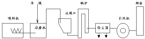 上述脫硫方法,都需要增加投資,據(jù)美國統(tǒng)計(jì),脫硫裝置投資占電站總投資的25%,運(yùn)行費(fèi)用增加15%.我們研制的燃煤鍋爐化學(xué)脫硫技術(shù)基本上不需復(fù)雜的裝置,只需要簡單的喂料機(jī)構(gòu),運(yùn)行費(fèi)用隨煤含硫量的增加而增加,一般在10%~15%之間,系統(tǒng)如圖:系統(tǒng)圖
