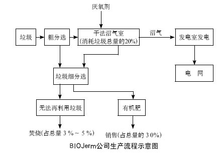 BIOJerm公司位于巴伐利亞州的默斯多夫市的郊區(qū)。該公司利用生活垃圾干法產(chǎn)沼氣并用沼氣發(fā)電,目前已形成了垃圾-沼氣-發(fā)電-有機肥的產(chǎn)業(yè)鏈,在政府相關政策的支持下,取得了較好的經(jīng)濟效益,實現(xiàn)了經(jīng)濟效益-生態(tài)效益-社會效益的統(tǒng)一。