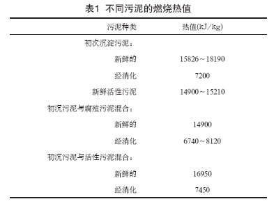 污泥的燃燒熱值與污泥的性質(zhì)有關(guān),詳見表1。
