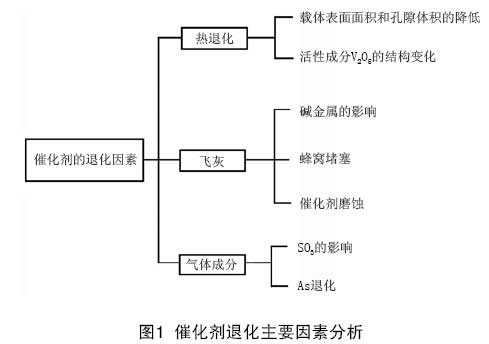 SCR的催化劑主要分為貴金屬催化劑、金屬氧化物催化劑、金屬離子交換的沸石類催化劑、商用V2O5/TiO2類催化劑等,其中V2O5/TiO2類催化劑以其自身的優(yōu)越性已成為SCR商用的首選催化劑。引起催化劑中毒的原因主要有如下因素(見圖1):
