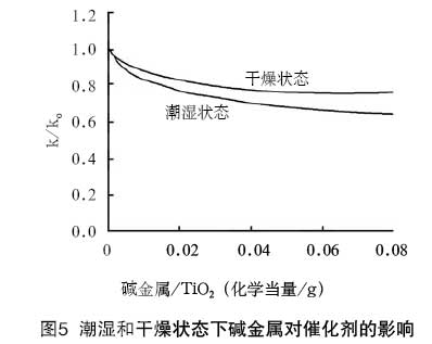 由圖5可知,在潮濕的環(huán)境下,催化劑的中毒情況比在干燥狀態(tài)下嚴重。