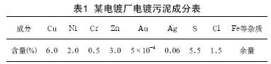 某電鍍工業(yè)園產出的電鍍污泥主要成分如表1所示(絕干量計)。