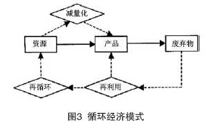 循環(huán)經濟將清潔生產和廢棄物的綜合利用融為一體,既要求物質在經濟體系內多次重復利用,進入系統的所有物質和能源在不斷進行的循環(huán)過程中得到合理和持續(xù)的利用,達到生產和消費的“非物質化”,盡量減少對物質特別是對自然資源的消耗;又要求經濟體系排放到環(huán)境中的廢物可以為環(huán)境同化,并且排放總量不超過環(huán)境的自凈能力。循環(huán)經濟實現“非物質化”的重要途徑是提供功能化服務,而不僅僅是提供產品本身,做到物質商品“利用”的最大化,而不是“消費”的最大化,并在滿足人類不斷增長的物質需要的同時,大幅度地減少物質消耗。同時經濟體系各產業(yè)部門協調運作,將一個部門的廢棄物用作另一個部門的原材料,從而實現“低開采、高利用、低排放”,進而形成“最優(yōu)生產、最優(yōu)消費和最少廢棄”的社會?傊h(huán)經濟物流模式可以認為是“資源—生產—流通—消費—再生資源”的反饋式流程,運行模式為“資源—產品—再生資源”(見圖3)。