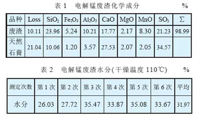 現(xiàn)將利用電解錳廢渣代替石膏作為水泥調(diào)凝劑的試驗情況報告如下。