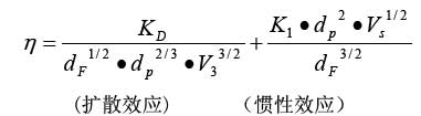 第一,過(guò)濾風(fēng)速與除塵效率。我們知道,從除塵機(jī)理上講,有慣性效應(yīng)(包括碰撞、攔截)和擴(kuò)散效應(yīng)。按Friediander 的理論,對(duì)濾料單一纖維的除塵效率為: